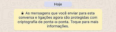 “A ideia é simples: quando você envia uma mensagem, a única pessoa que pode lê-la é a pessoa ou grupo para quem você a enviou. Ninguém pode ver dentro dessa mensagem. Nem cibercriminosos. Nem hackers. Nem regimes opressivos. Nem nós mesmos. A criptografia de ponta a ponta ajuda a fazer a comunicação via WhatsApp privada — como em uma conversa face a face”, diz nota do aplicativo.